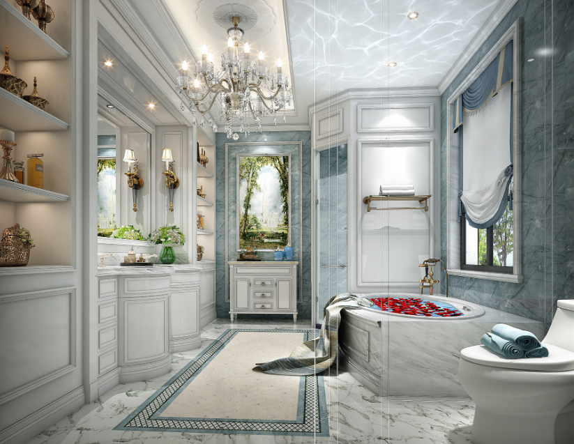 优化灯光与色彩:选择 LED 灯作为主光源,在洗手盆和镜子周围增加辅助灯光。色调上,建议选择明亮、清新的浅蓝色、米白色等,让卫生间显得更加宽敞与明亮,也可通过一些小物件的点缀,增加色彩的变化。